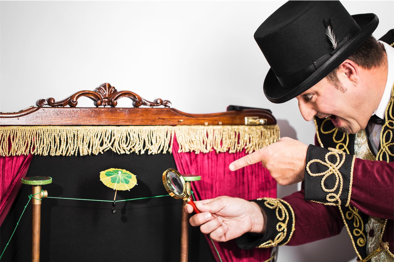 Felix Brunet combina les Arts de Titellaire, Humor Gestual i els secrets de Mag en aquest espectacle circense-teatral basat en els llegendaris circs de puces del segle XIX, on l’espectador veurá el que no hi ha, sentirá el que no existeix i es divertirá sensen parar.